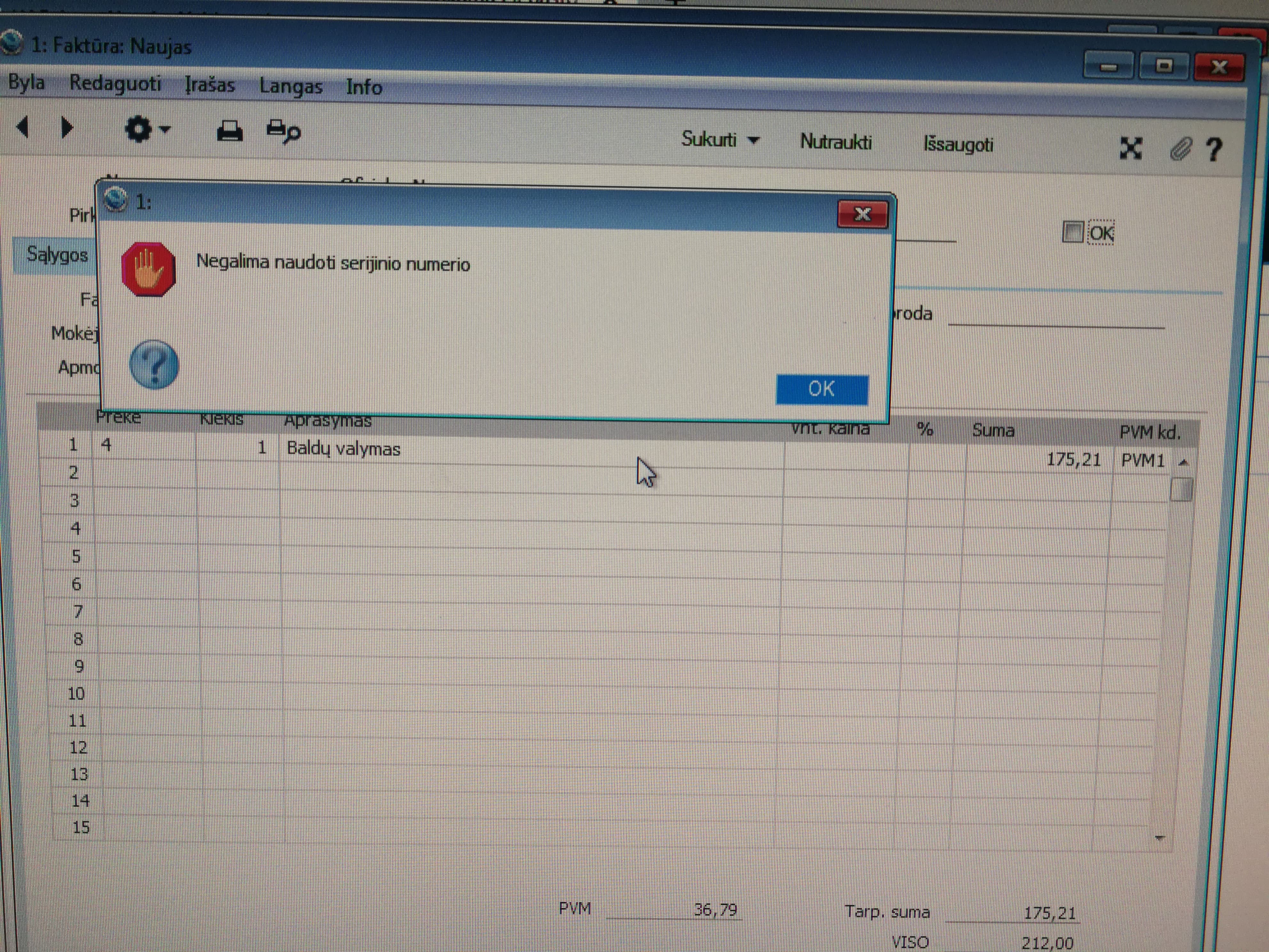 padarius naują sąskaitą faktūrą neleidžia jos tvirtinti ir išmeta štai tokią lentelę, (prisegu). Darant naują sąskaitą vedžiau naują pirkėją (kontaktą). Lauksiu atsakymo čia arba elektroniniu paštu.