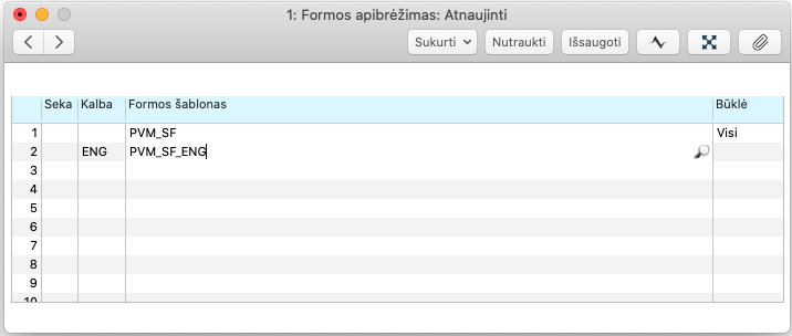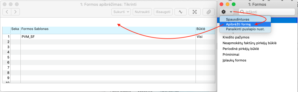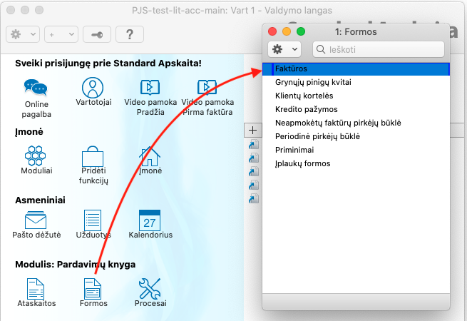 Pavyzdžiui, faktūrų formos apibrėžimą rasite Pardavimų knygos modulyje.